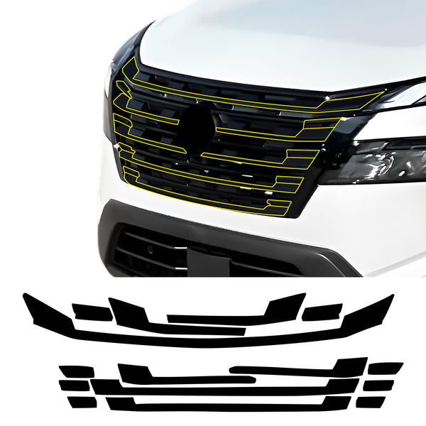 Nissan Rogue 2024-2026 Front Grille Blackout Chrome Delete Kit – Precut Gloss Black Vinyl Overlays Film